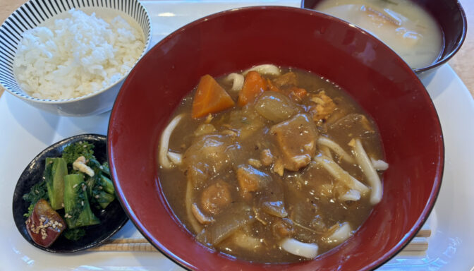 寒い日にもほっと温まる、和のぬくもりを感じるカレーうどん御膳です。